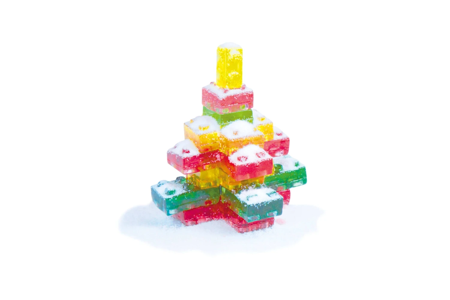 Build your own yummy Christmas tree with these gummy candy blocks. Includes sour powder to dust your completed masterpiece with a playful sour flavor.