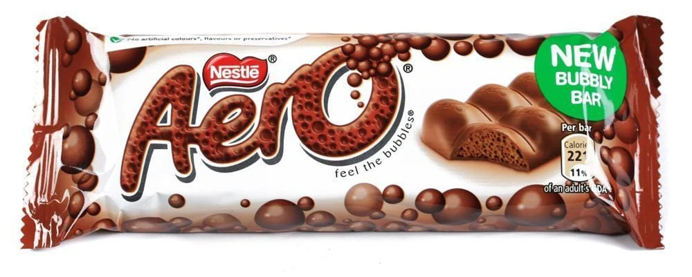 Nestle Aero Milk Chocolate Candy Bar is a bubbly milk chocolate candy produced in the UK using no artificial colors, flavors, or preservatives. Enjoy a taste of sweet, milk chocolate, from the UK.