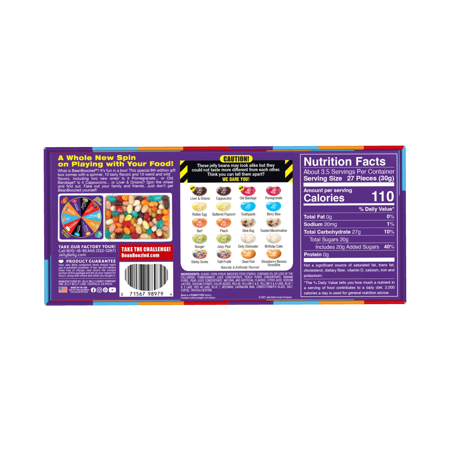 This BeanBoozled® 6th Edition jelly bean spinner gift box includes 20 flavors of jelly beans. The 10 weird and wild flavors look identical to 10 classic and delicious flavors for a fun gross jelly bean game. Find out if you can tell the difference between the tasty Toasted Marshmallow and pungent new Stink Bug.