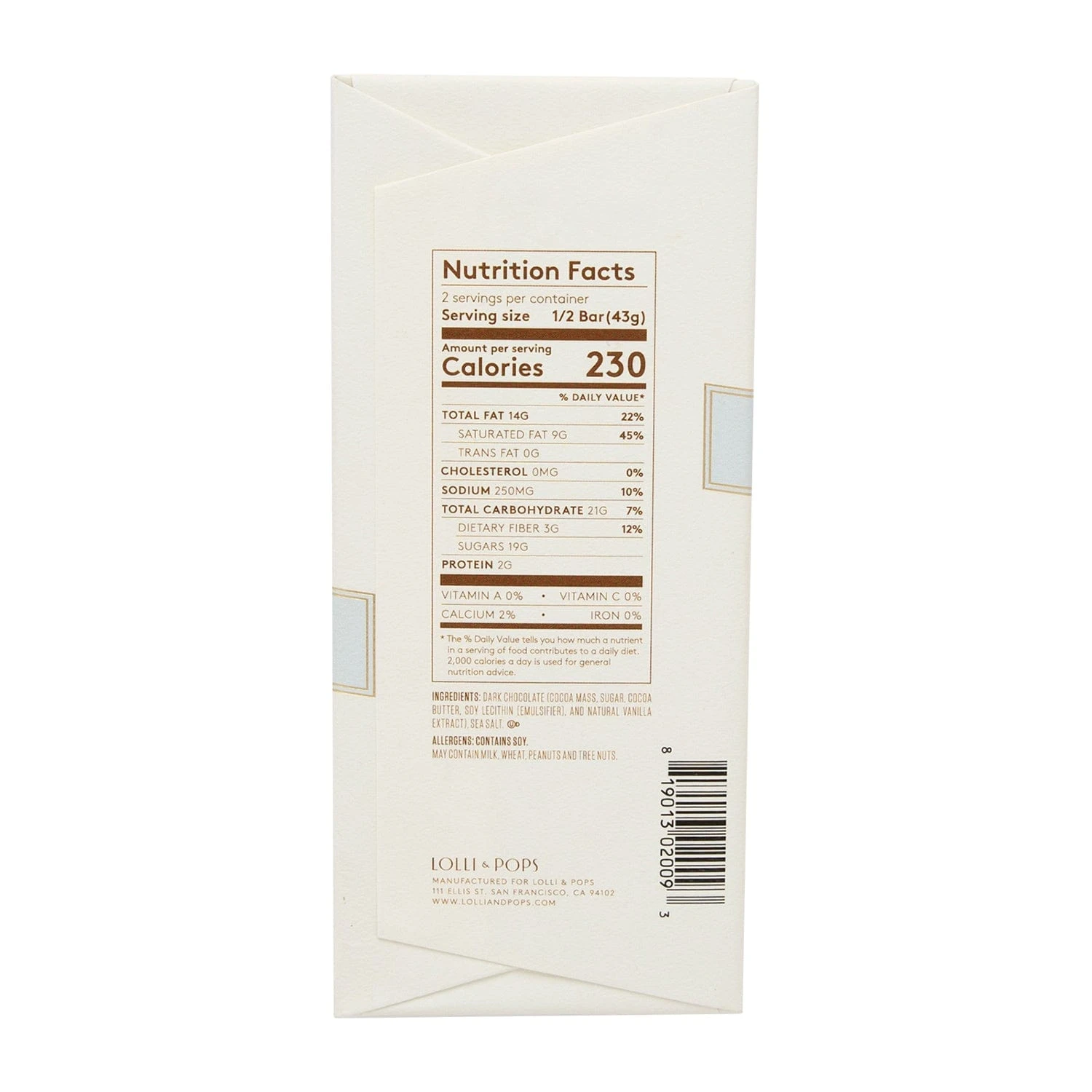 Rich dark chocolate evenly sprinkled with savory coarse sea salt.