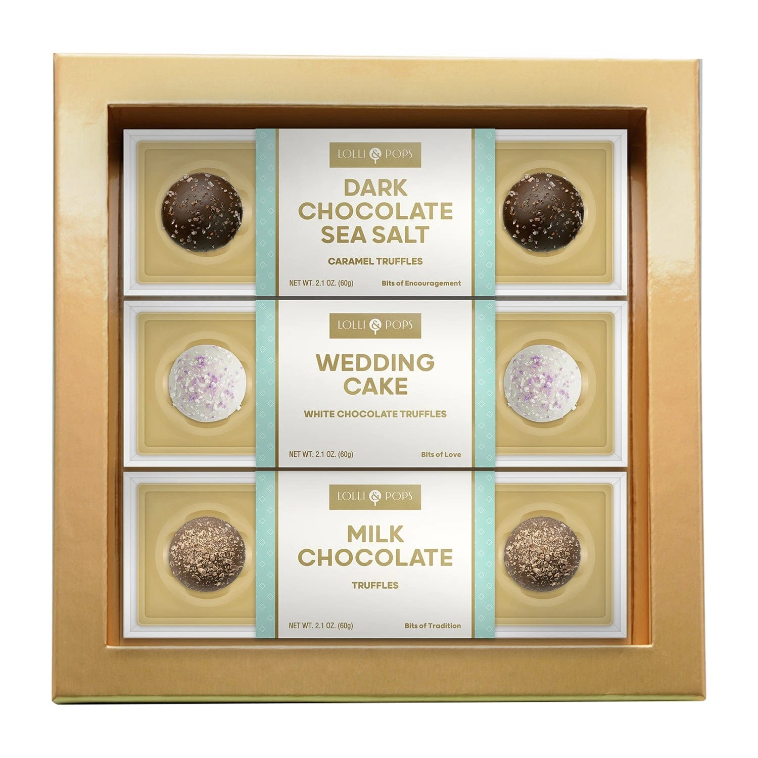 Are you or a loved one a chocolate lover? If so, grab this classic set of truffles in the perfect giftable box. Featuring flavors of classic milk chocolate, wedding cake, and sea salt caramel dark chocolate.