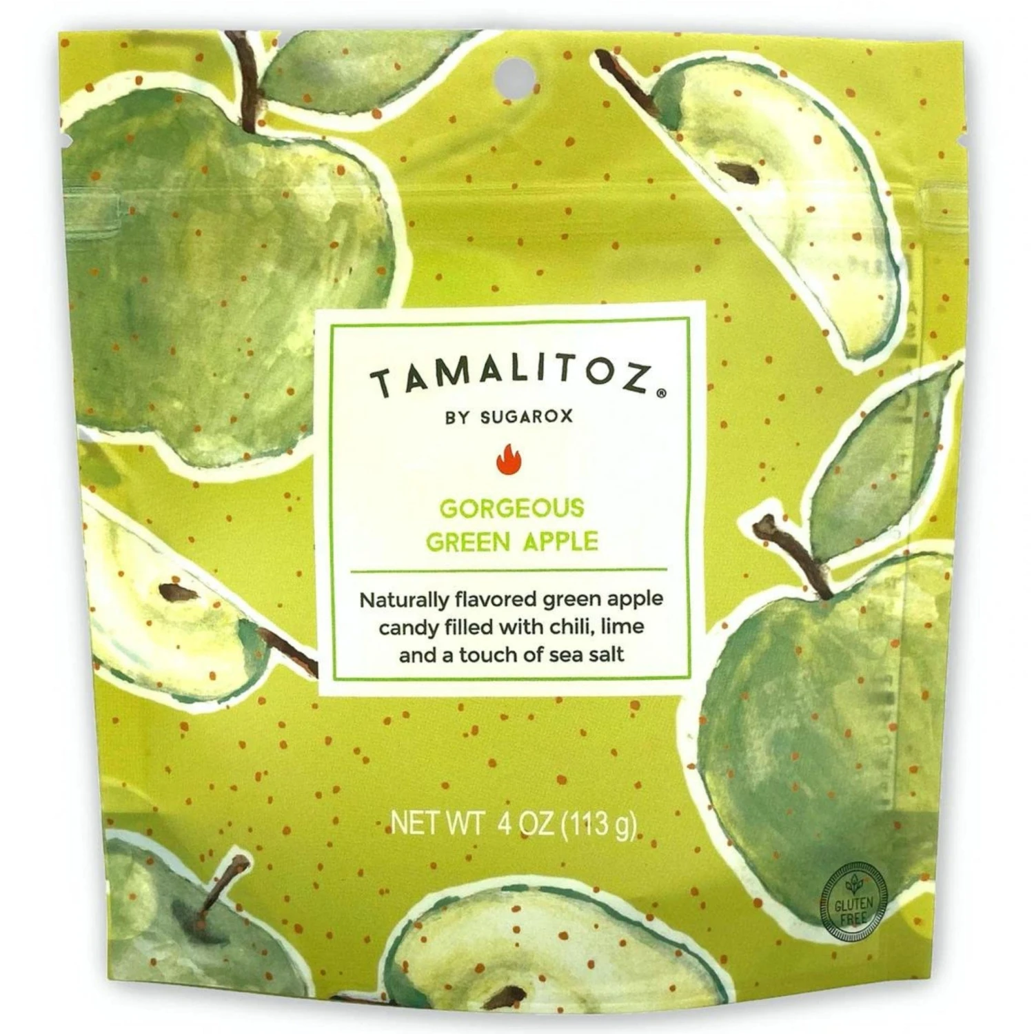 Gorgeous Green Apple Tamalitoz tastes like the apples grown in Chihuahua Mexico, home to the sweetest and juciest apples south of the Rio Grande River. Sweet and perfectly sour green apple candy combined with our chili, lime and sea salt center will give you a no turning back Norteño Candy Moment.4 oz