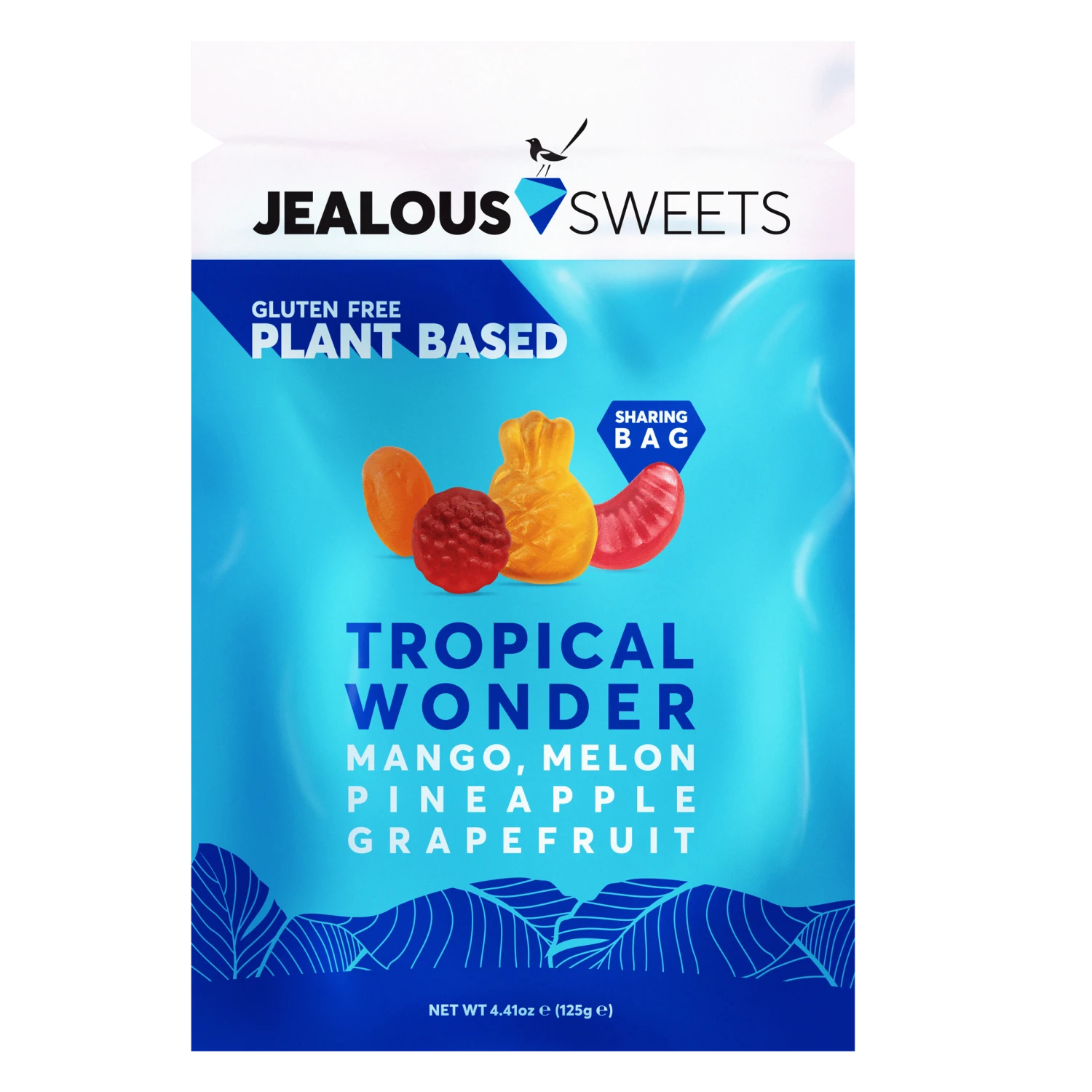 These deliciously chewy vegan gummy candies are in fun fruit shapes, and come in a flavor assortment of tropical flavors including mango, melon, pineapple and grapefruit to give you plenty of real fruit flavor in every bite. Gluten-free and only 133 calories per package!