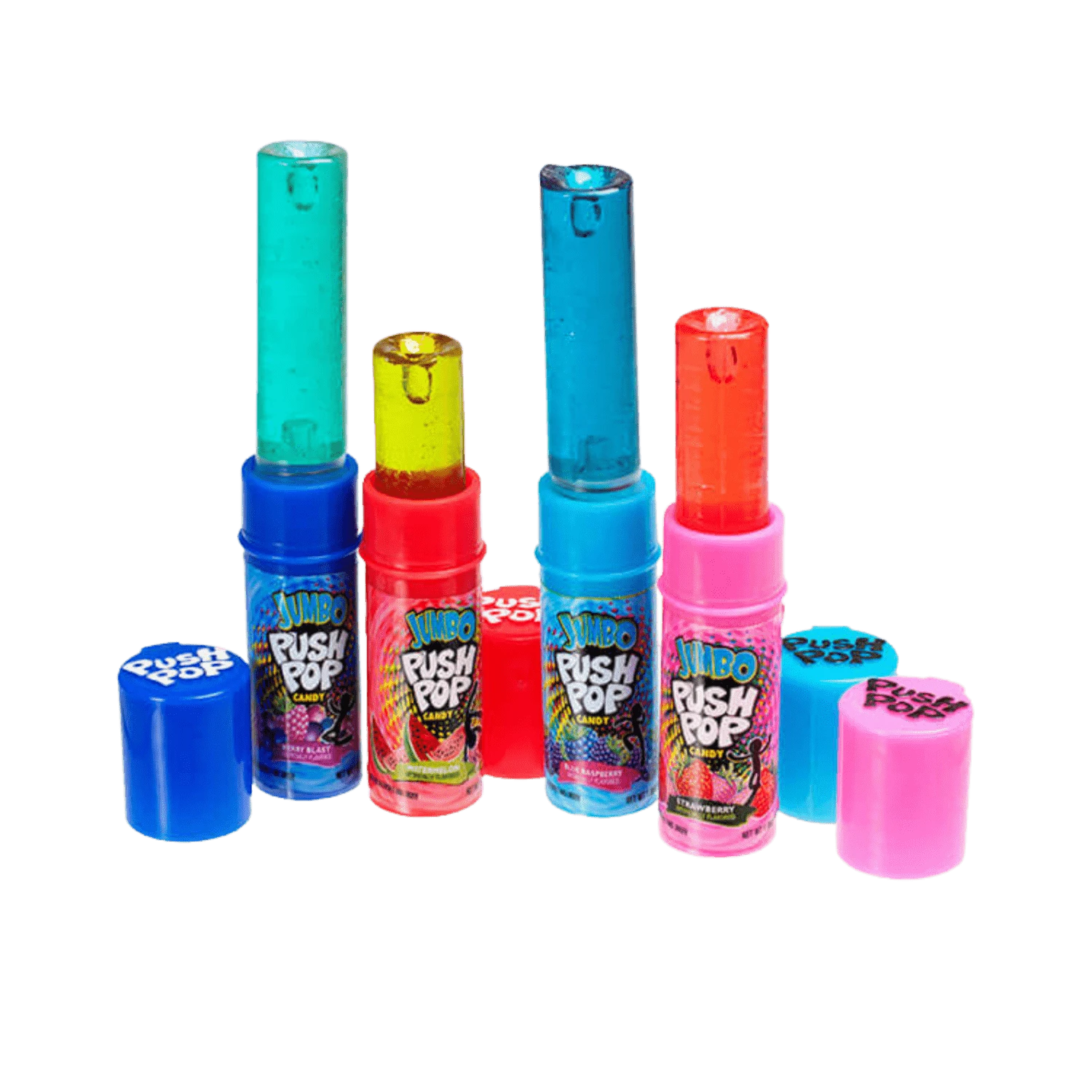Upgrade your push pop’s with these JUMBO push pops! Simple, yet delicious flavors such as: berry blast, blue raspberry, strawberry, and watermelon are the perfect sweet treat.*
