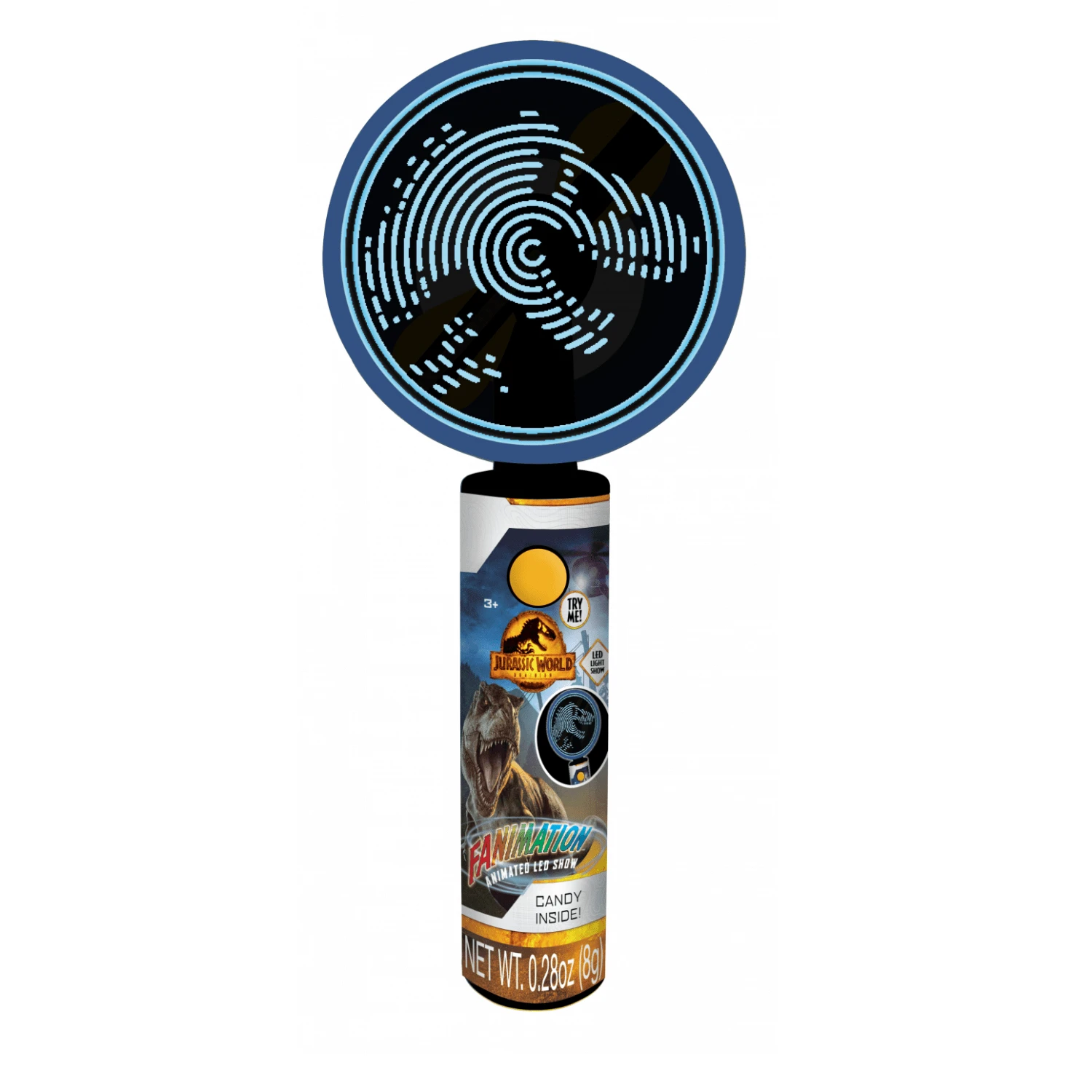 This Jurrasic World Fanimation fan illuminates dinosaurs from the past you thought you’d only see in the movies through animated LED which is sure to light up your world. Each fan comes with fruit flavored dextrose candies in the handle.