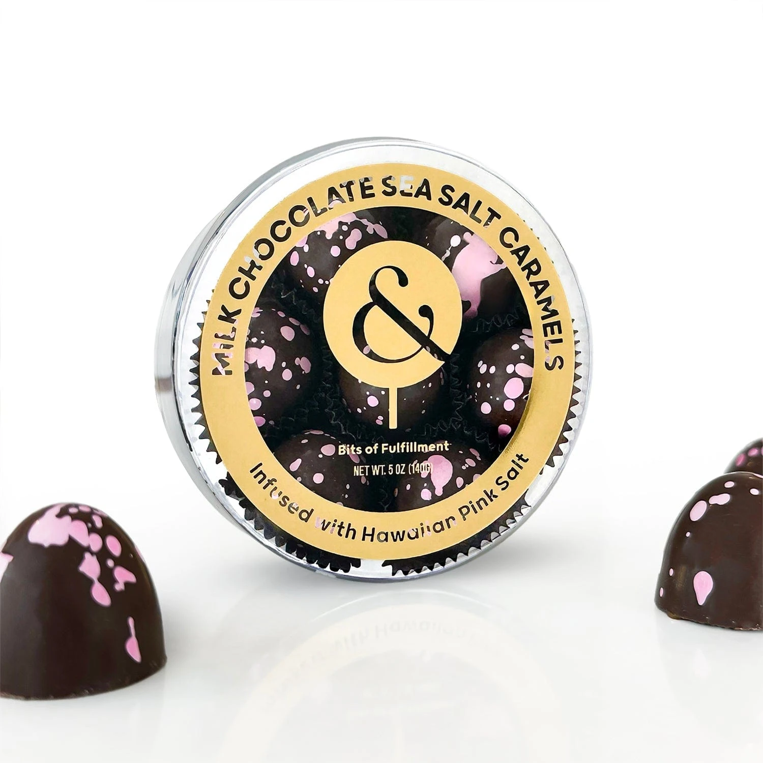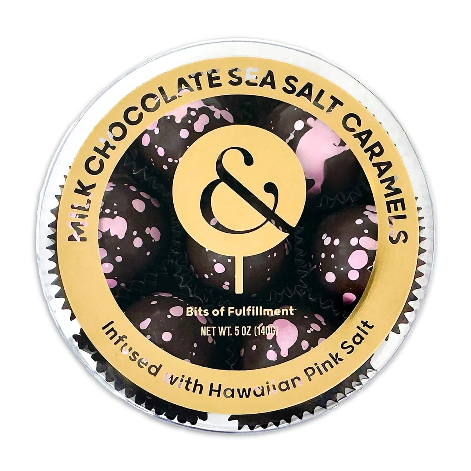 Indulge in pure bliss with our delectable caramel round: silky milk chocolate, a buttery caramel core, and a touch of Hawaiian pink sea salt.