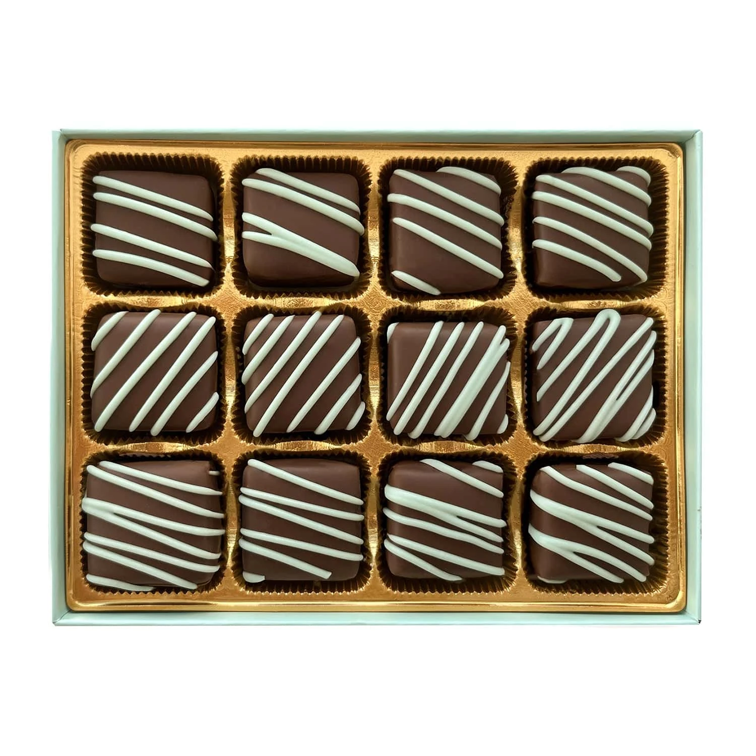 Fresh Mint Flavored Chocolate Center Enrobed in Belgian Milk Chocolate. Decadently Smooth Melt in Your Mouth Chocolates. Includes 12 pieces.