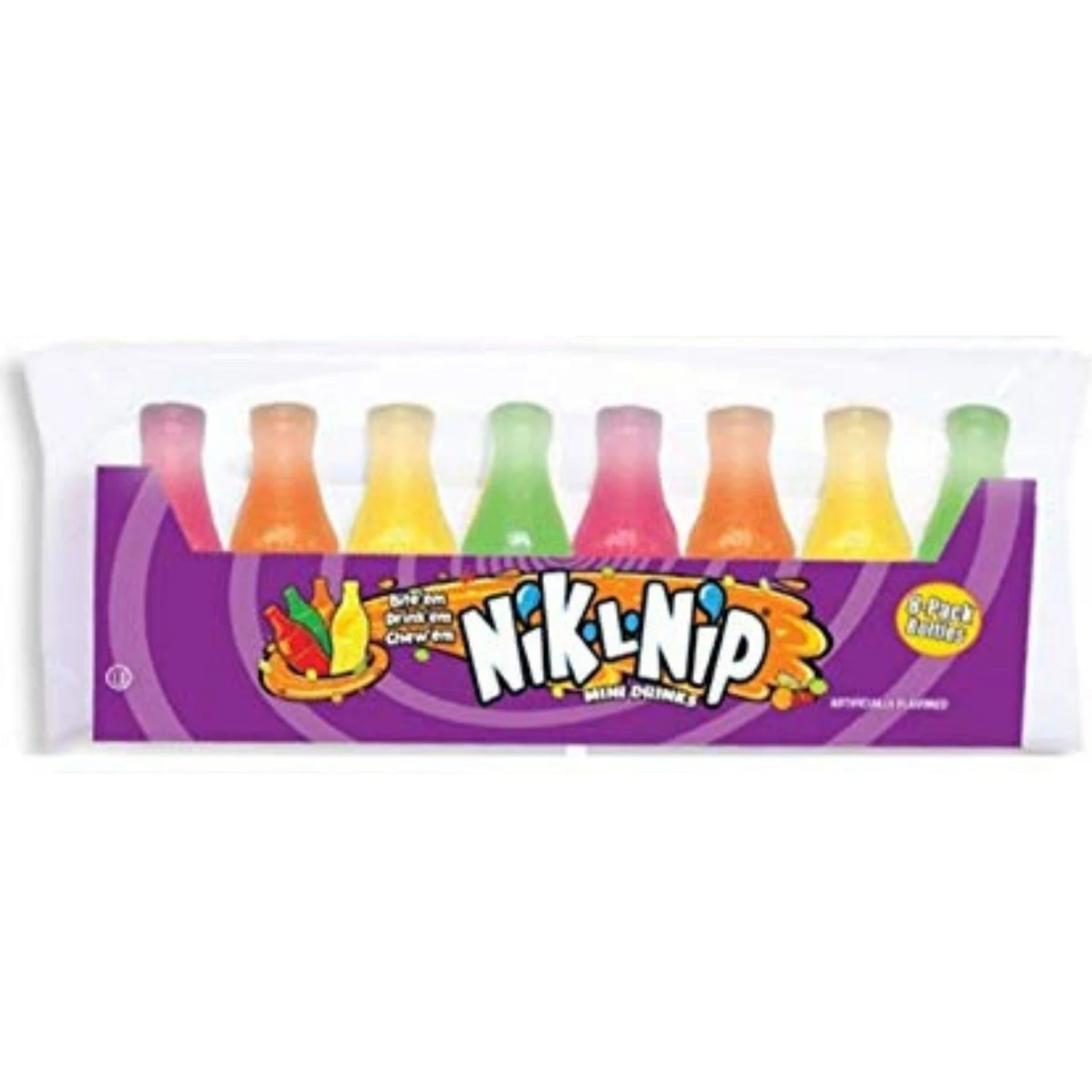 A blast from the past – classic Nik-L-Nip® wax bottle candy variety packs, containing a variety of flavors. A distinct wax candy experience that began in the early 1900’s, these sweet treats include: Blazin’ Blue Raspberry, Chillin’ Cherry, O-So Orange, Hello Lemon, and Groovin’ Green.