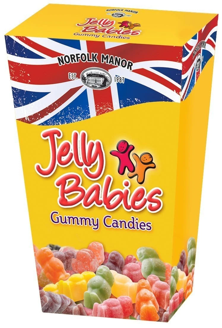Jelly Babies are a type of soft sugar jelly sweet, shaped as plump babies, in one variety of colors. They were first manufactured in Lancashire, England, in the nineteenth century.8.82 oz