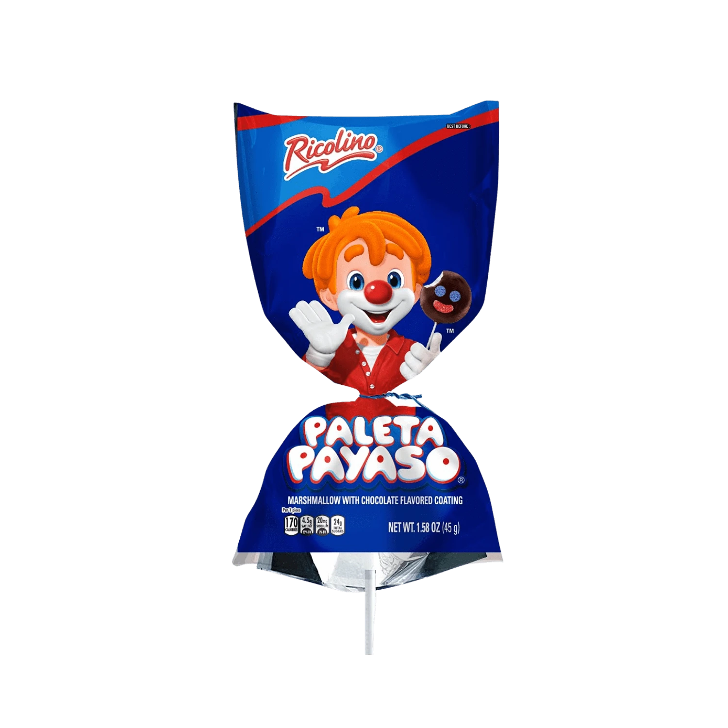 This cute little lollipop is a marshmallow covered in chocolate and then has three additional gummies to give this clown his face. Perfect for the kids and those that are kids at heart. Net Wt: 1.6 oz