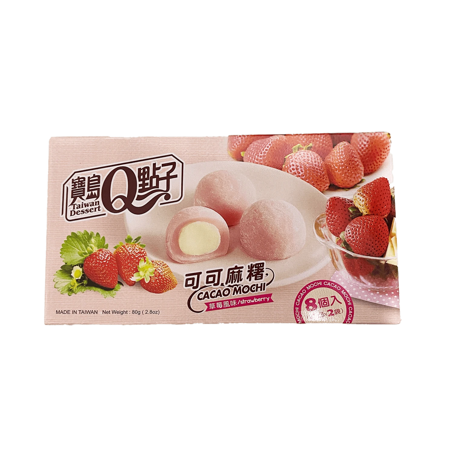 Royal Family Strawberry Mochi, has a strawberry flavored outer layer with a creamy center. It gives you strawberries and cream vibes all in one bite.