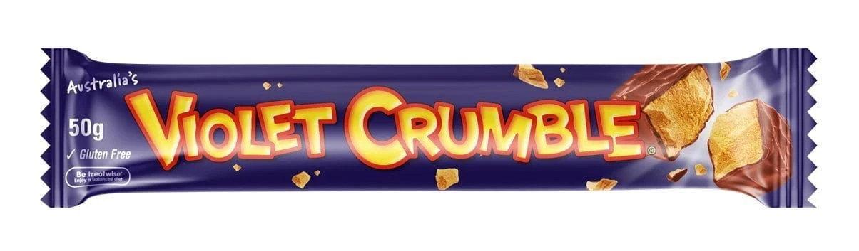 Violet Crumble is an Australian chocolate bar first made in South Melbourne around 1913, now made in Adelaide, South Australia. The Violet Crumble bar is a crumbly honeycomb toffee centre coated in compound chocolate.