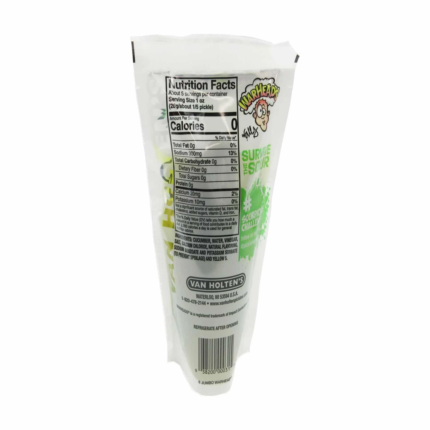 Ready for a challenge? Try this Warheads Extreme Sour Pickle. Enjoy a premium jumbo pickle soaking in Warheads famous sour flavor!
