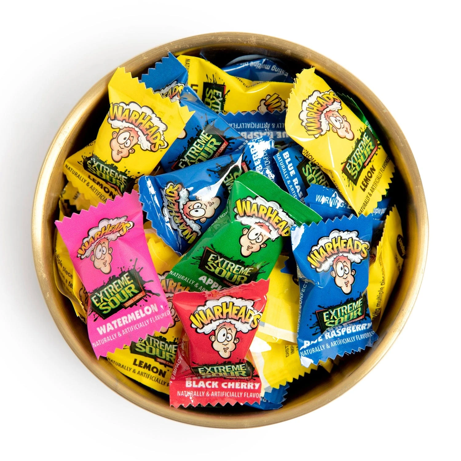 Pucker up! These warheads sours aren’t for the faint of heart. Once you overcome the extreme tangy tart, you’re met with a refreshing fruity flavor. Each warhead is individually wrapped.